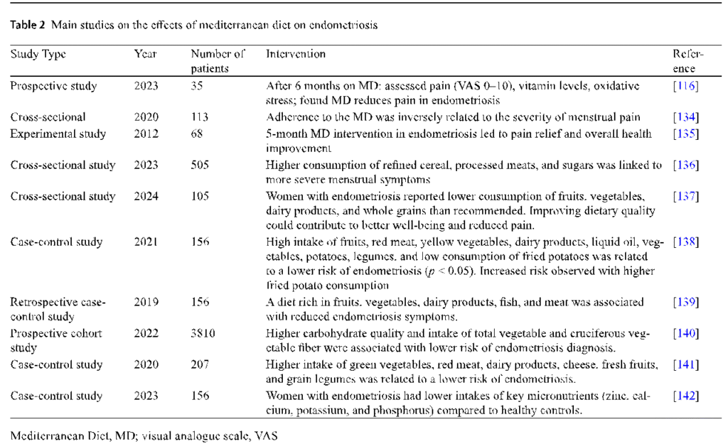 • Dieta Mediterrânea para pacientes com endometriose normopeso